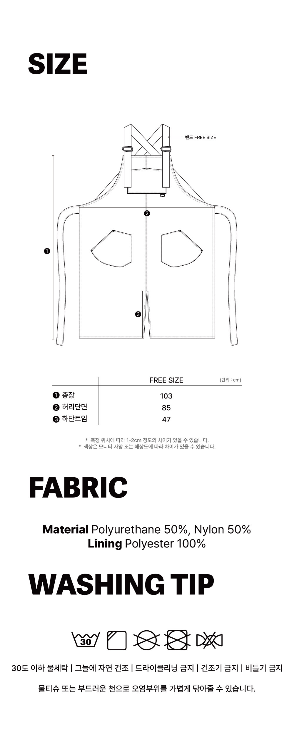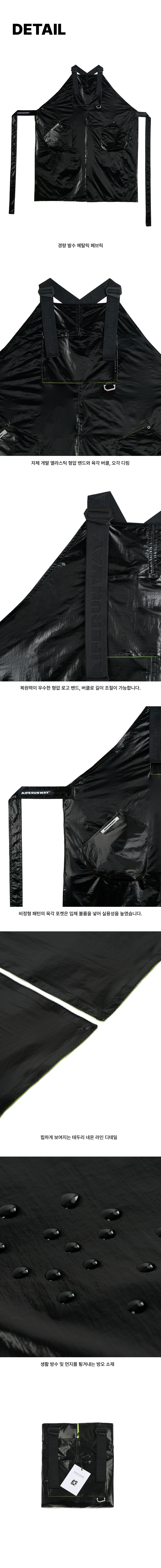 안감에 에이프런웨이 네온 로고 원단을 리버스 배치,
