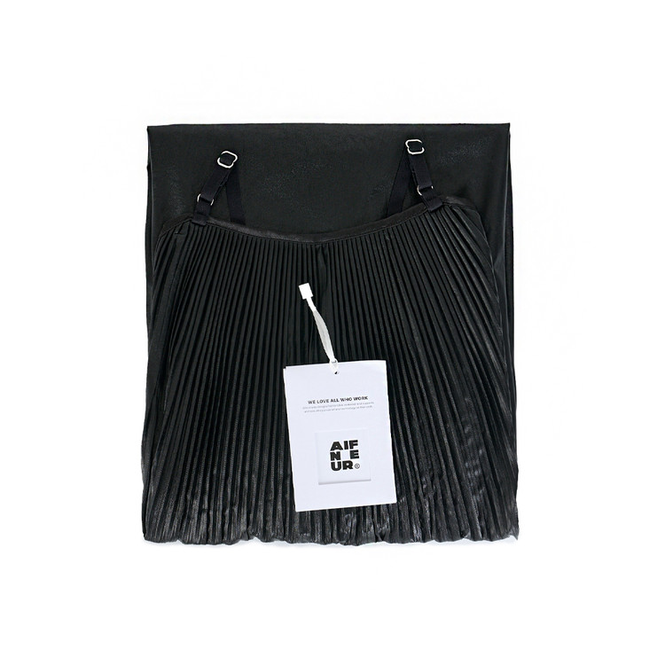 블랙의 강인함과 플리츠의 유연함.