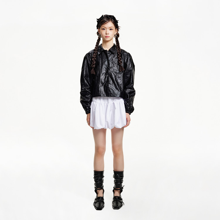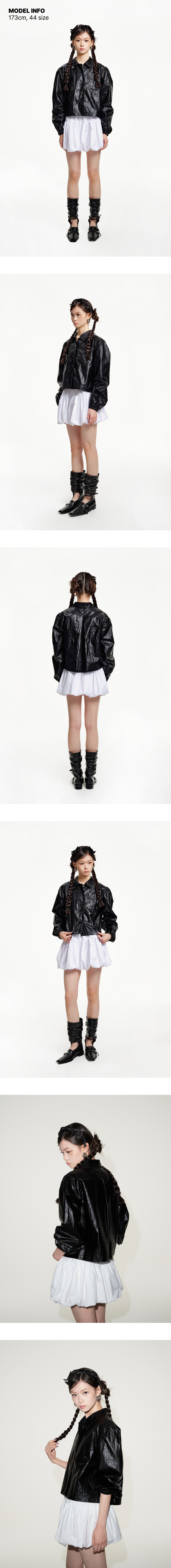 여유로운 세미 오버핏과 세미 숏 길이감이 스타일리시한 실루엣.