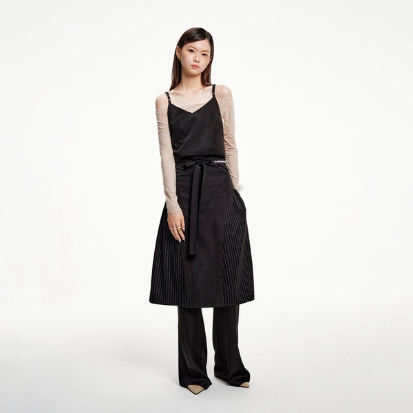 한쪽 끈과 안쪽 끈을 활용해 스커트 길이를 조절하며