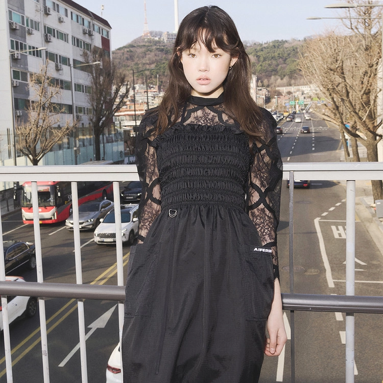 모던한 블랙 위에 섬세하게 잡힌 스모크와 프릴