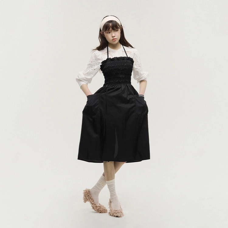 홀터넥끈을 안에 넣고 허리 스커트 에이프런으로도 연출 가능