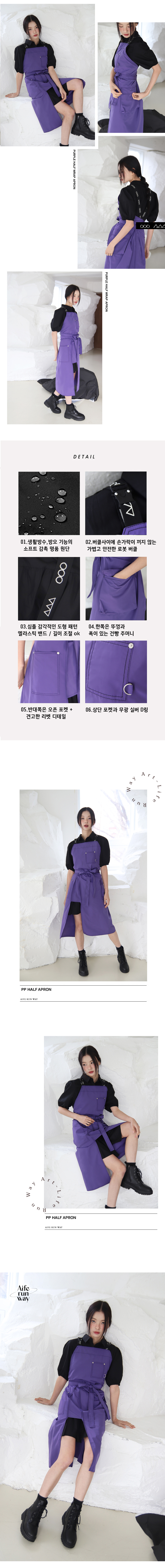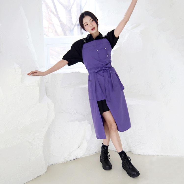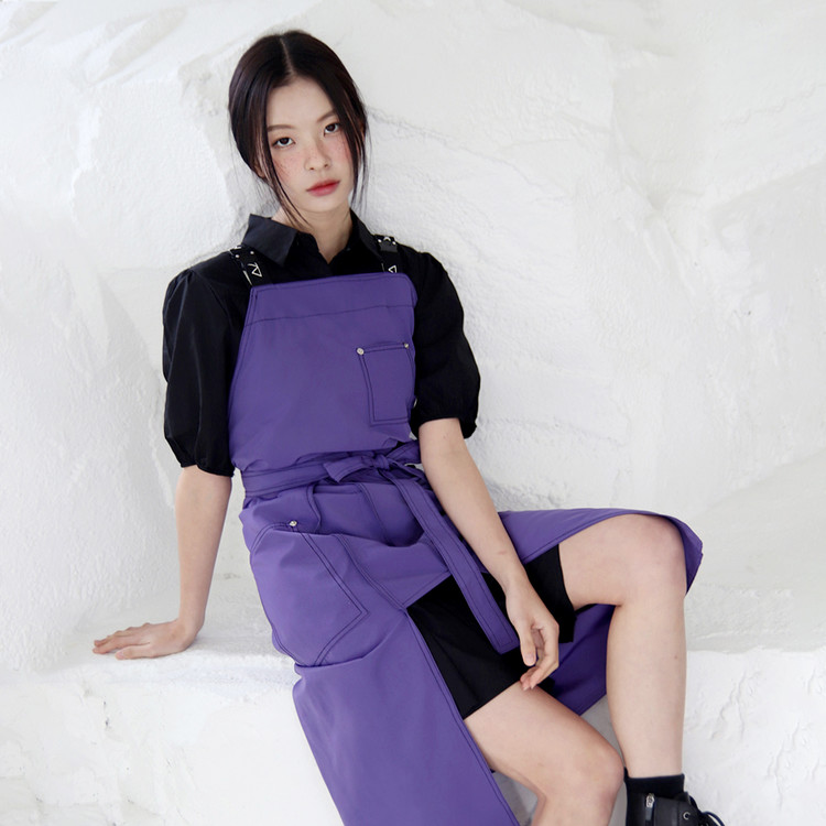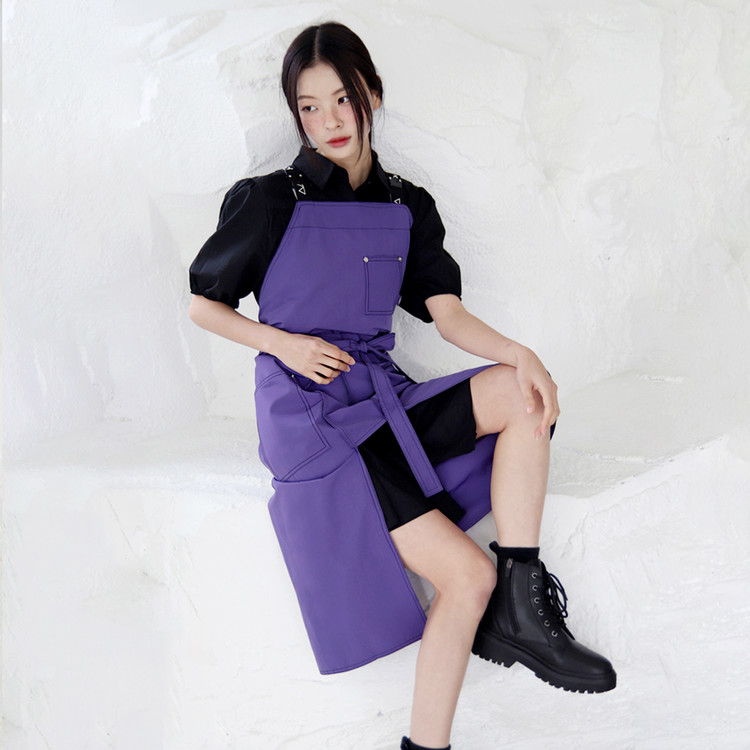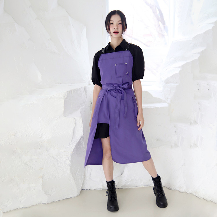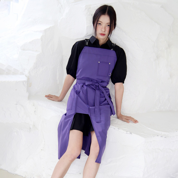 선명하고 쿨한 바이올렛! 쉐입 심벌이 퍼니하게 포인트 되는 레그 오픈 앞치마