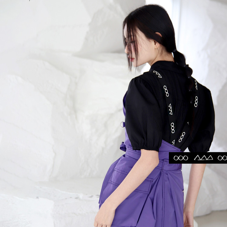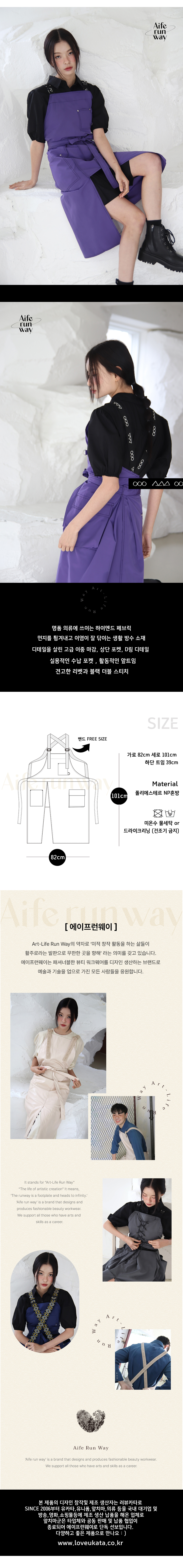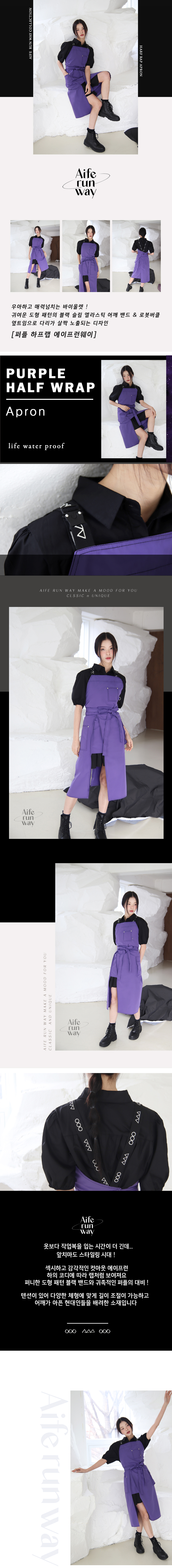 선명하고 쿨한 바이올렛! 쉐입 심벌이 퍼니하게 포인트 되는 레그 오픈 앞치마