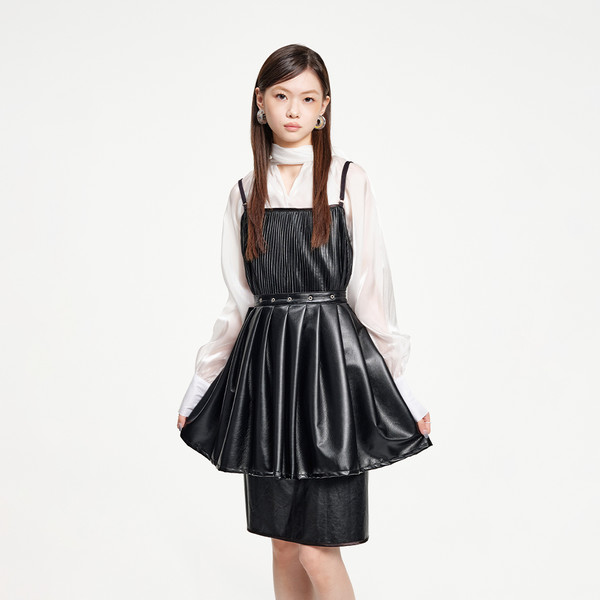 페이크 레더 에이프런 원피스입니다.